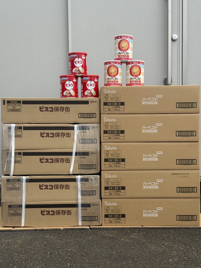 JA共済連が行っている「JA共済の地域貢献」の支援を受け、本店に災害時用非常食を用意しました。